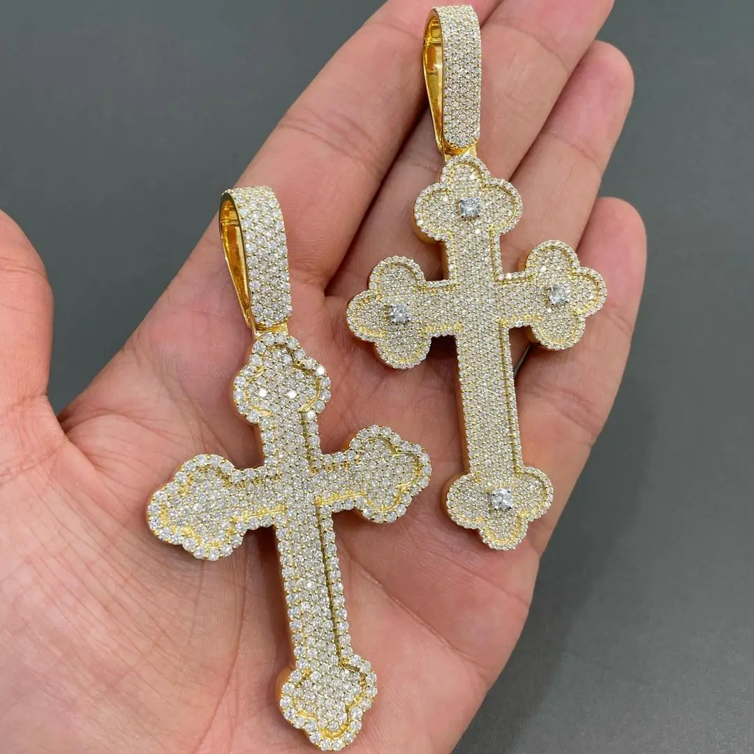 925 Sterling Platinum Plated High Quality Moissanite Cross Shape Hip Hop Style Pendant Customized Iced Fine Jewelry Charms Chain